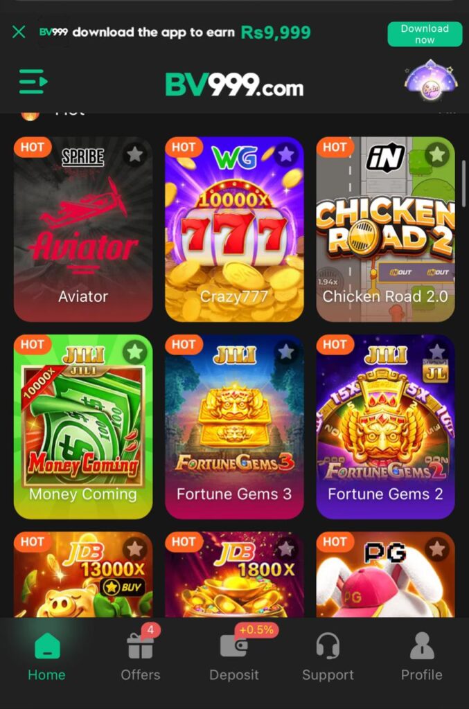 The BV999 Game is trending across Pakistan because it is fun, fair, and easy to use. Players can register within minutes and start playing right away. The app’s simple layout makes it suitable for everyone even those who are new to earning games. With just a few taps, you can spin slots, play cards, and start earning rewards.